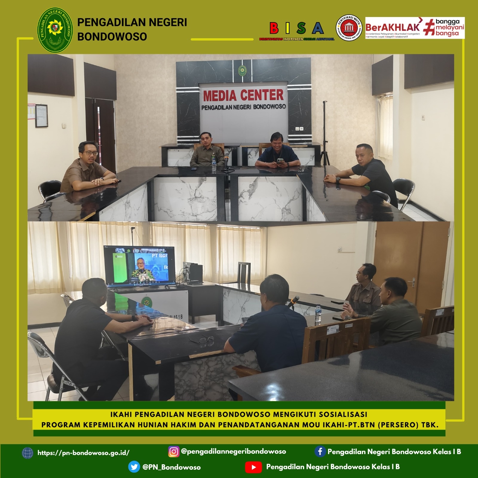 IKAHI Pengadilan Negeri Bondowoso Mengikuti Sosialisasi Program Kepemilikan Hunian Hakim dan Penandatanganan MoU IKAHI - PT.BTN (Persero) Tbk.
