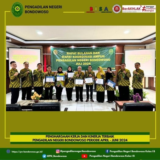 Penghargaan Kerja dan Kinerja Terbaik Pengadilan Negeri Bondowoso Periode April - Juni 2024