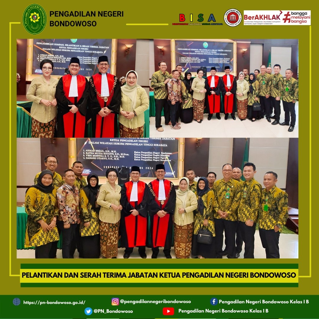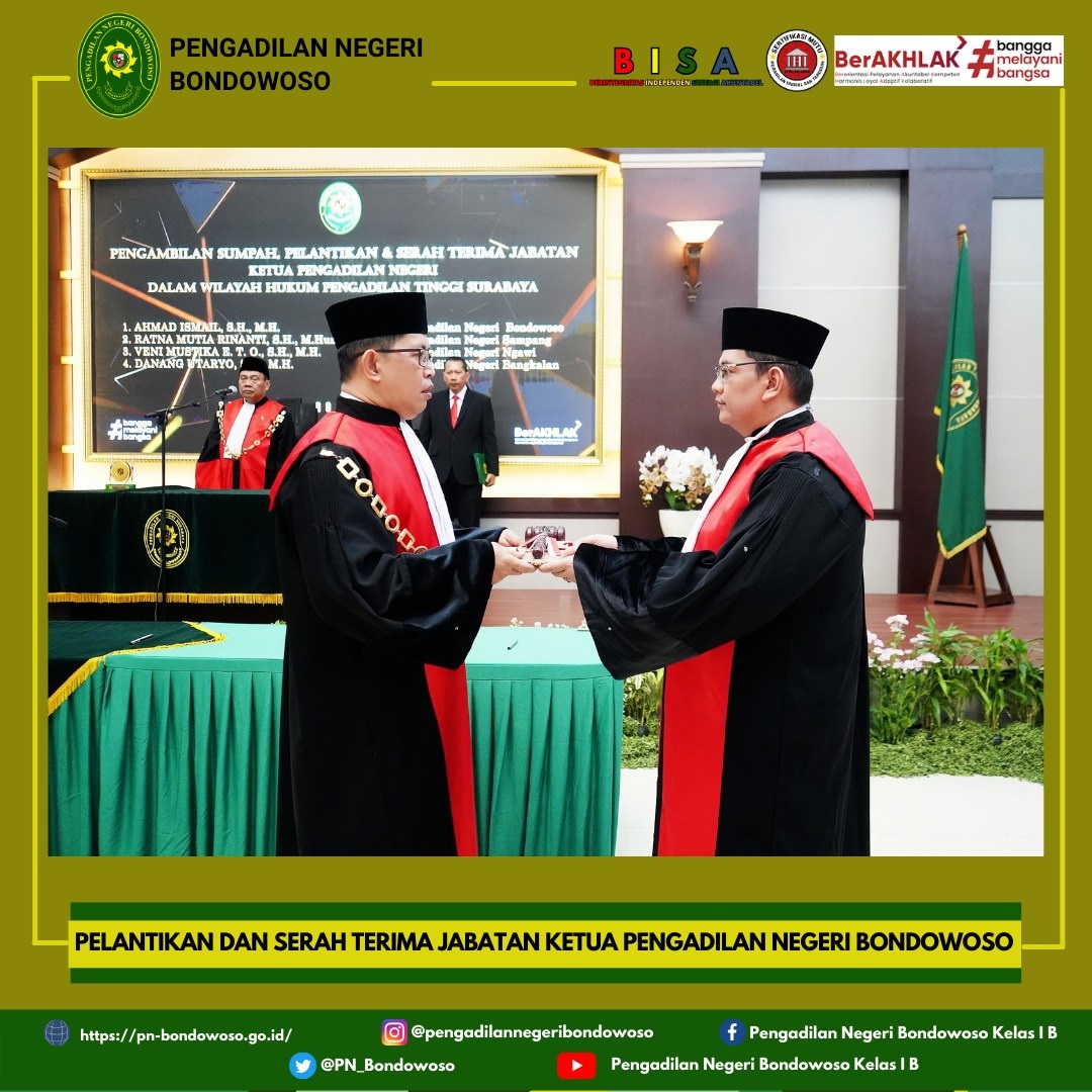Setelah pelantikan dan serah terima jabatan tersebut, jabatan Ketua Pengadilan Negeri Bondowoso kini digantikan oleh Bapak Ahmad Ismail, S.H., M.H.