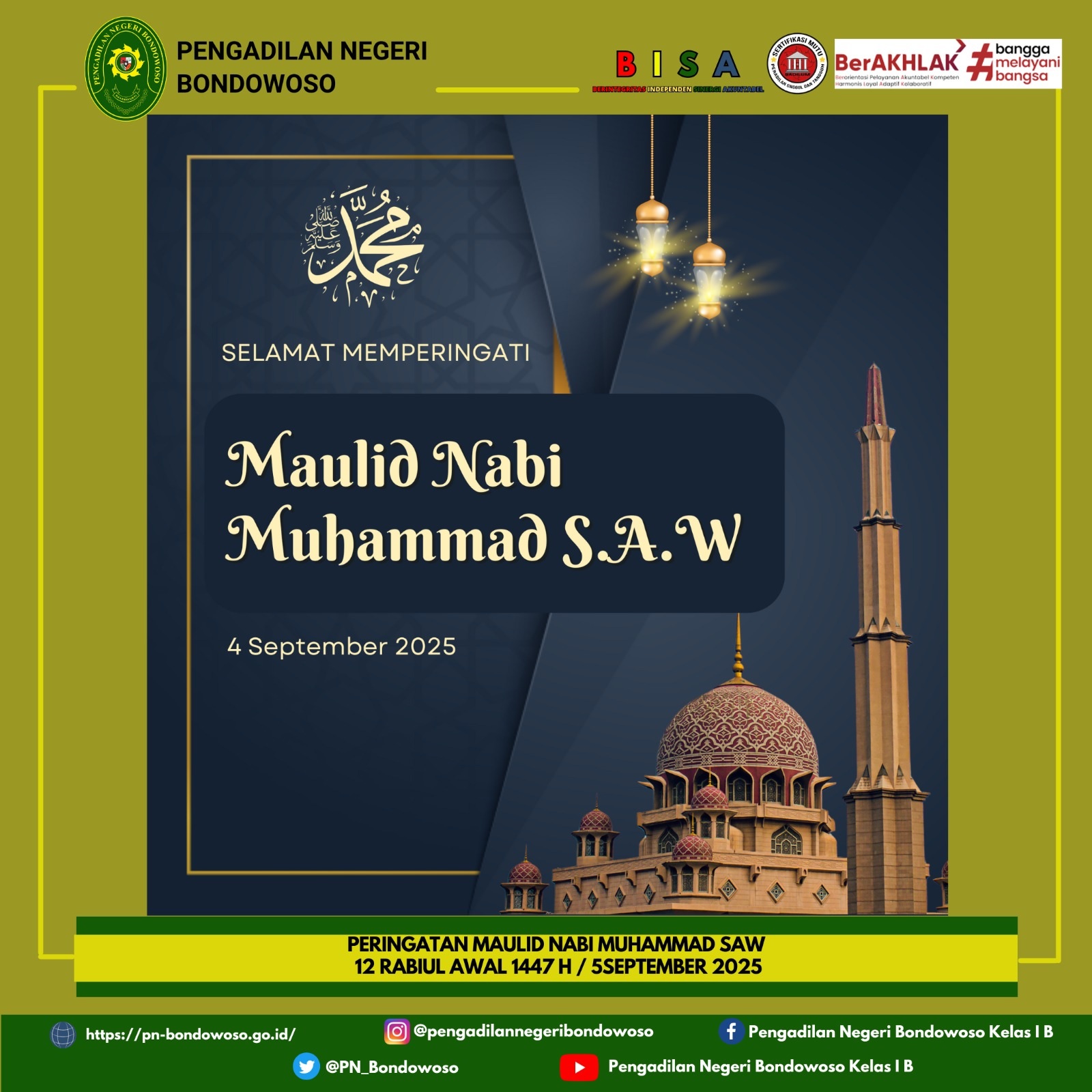 Sehubungan dengan adanya Peringatan Maulid Nabi Muhammad SAW 12 Rabiul Awal 1447 H.