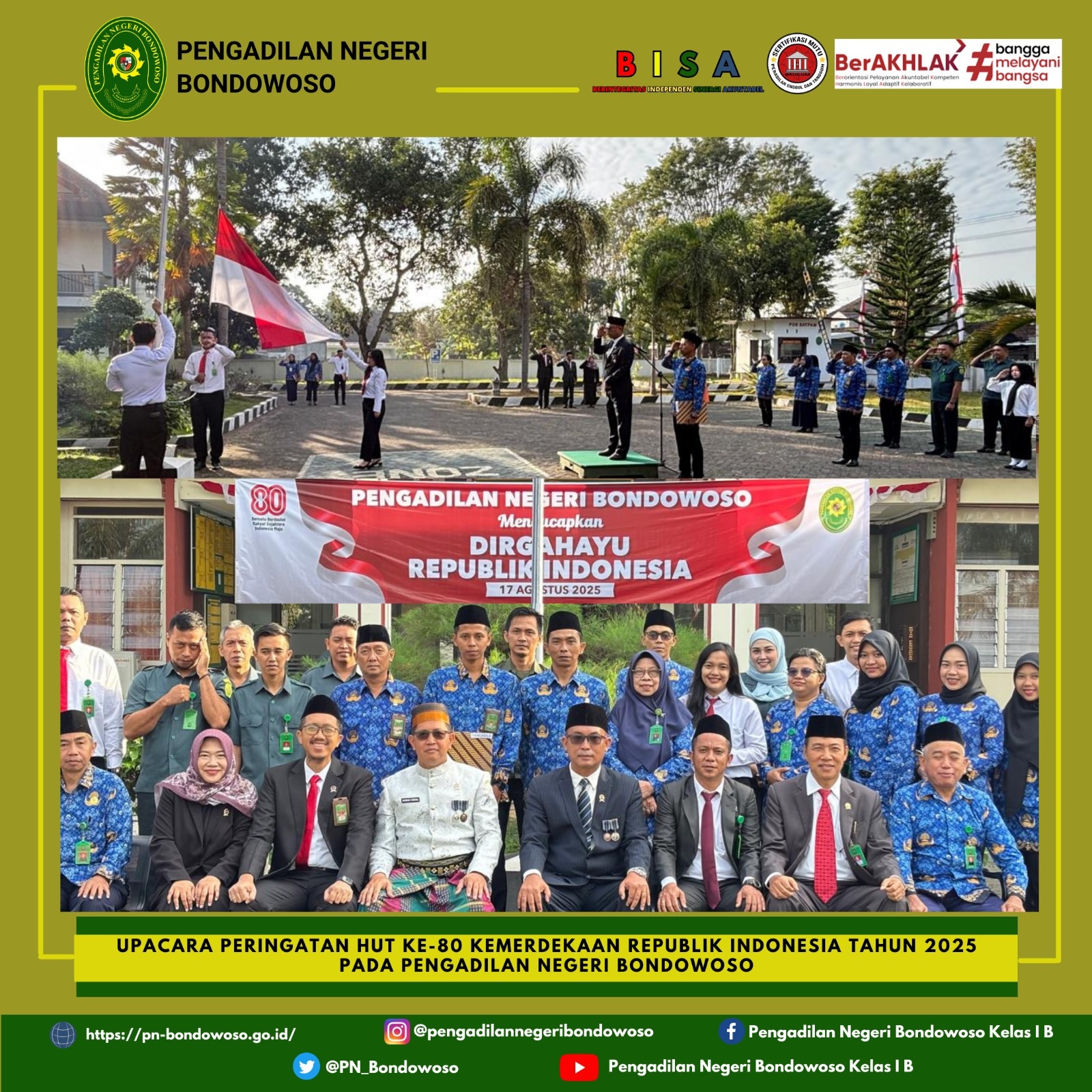 Pengadilan Negeri Bondowoso menyelenggarakan Upacara Peringatan Kemerdekaan Republik Indonesia Ke-80.