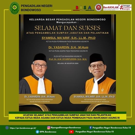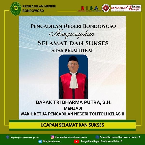 Pengadilan Negeri Bondowoso mengucapkan selamat dan sukses