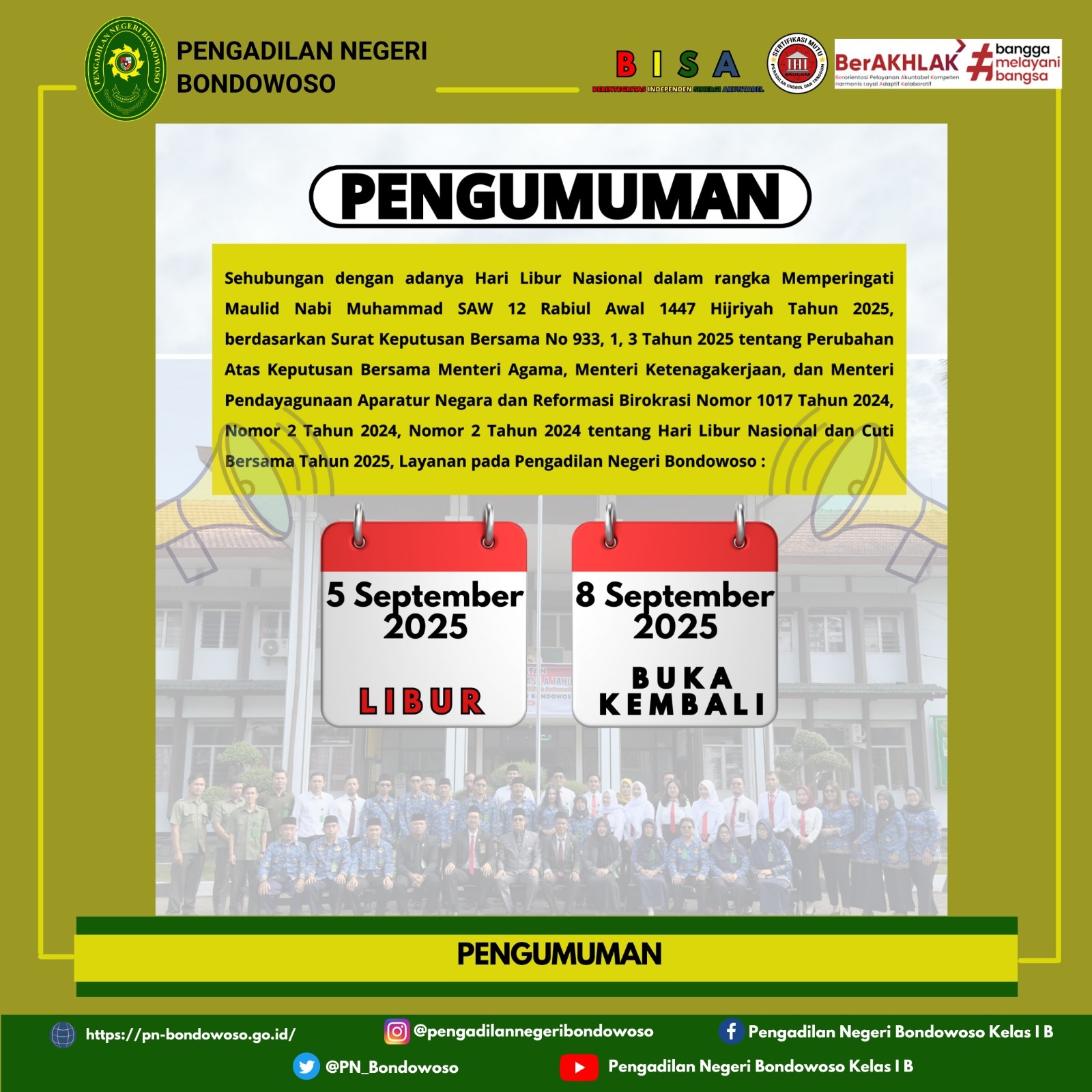 Sehubungan dengan adanya Peringatan Maulid Nabi Muhammad SAW 12 Rabiul Awal 1447 H.